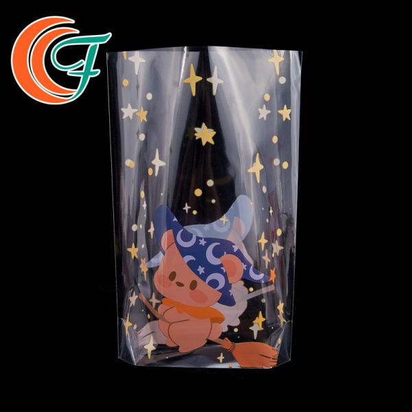 Custom Self Adhesive Seal Or Flat Square Bottom Transparent Clear Bopp Opp Plastic Dessert Baking Bread Packing Bag With Ties